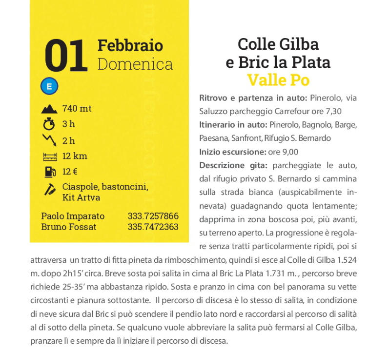 Organizzatori: Bruno Fossat 3357472363, Marco Brighenti 3358205074