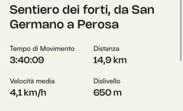 NewsAggiornamento giteGita di Pasquetta Sentiero dei forti da San Germano a PerosaCarissimi Ciaspolini,Vi mandiamo il profilo della gita di Lunedì 6 Aprile Pasquetta. La tappa prescelta del Camino dei Forti è quella che da San Germano porta a Perosa Argentina lungo un percorso che speriamo risulti piacevolmente inedito per tutti. Si parte appunto da San Germano e si sale su sentiero nel bosco per poi procedere praticamente in piano avendo la valle alla nostra destra. Si attraversano piacevoli borgatine e con un ultimo strappo finale si raggiunge la parte più alta della nostra tappa. Sempre nel bosco si discende infine a Pomaretto e dunque Perosa. Il percorso è tutto su sentiero salvo la primissima e ultimissima parte su asfalto: consigliate bacchette e scarponcini. Confidiamo nel meteo, se ci saranno variazioni di programma verranno comunicate venerdì entro la sera.Dovremo gestirci con le auto per organizzare il rientro (la meta è in un luogo diverso dalla partenza), ma ci organizzeremo direttamente la mattina della gita.RITROVO E PARTENZA AL CARREFOUR DI VIA SALUZZO ALLE ORE 9:00, caffè a San Germano. Vi aspettiamo!Margherita & AlbertinoCaricate le foto del 2026 fino al 29 MarzoAggiornate Gite 2026 fino a Giugno Aggiornati i Trek 2026Libretto Gite Ciaspole 2026 pdf_________________________________________________________________CHI ha foto delle gite e gradisce condividerle le invii con WhatsApple istruzioni le trovate alla pagina Galleria del sito.---------------------------------------------------------------------------------